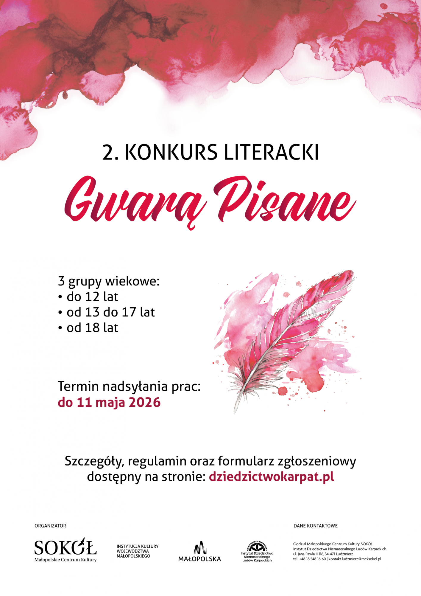 Ogłoszenie wyników, wręczenie nagród i wyróżnień będzie miało miejsce podczas uroczystego Finału Konkursu w Instytucie Dziedzictwa Niematerialnego Ludów Karpackich w Ludźmierzu – w dniu 19 czerwca 2026 r.