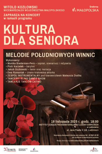 Trzy poprzednie edycje programu Kultura dla Seniora spotkały się z bardzo dużym odzewem i ciepłym przyjęciem. W ramach tego cyklu zespoły artystyczne instytucji kultury województwa małopolskiego – Opery Krakowskiej oraz Filharmonii im. Karola Szymanowskiego w Krakowie oraz artyści związani z Małopolską występują w różnych miejscach naszego regionu. Ich ideą jest umożliwienie obcowania z kulturą wysoką w całej Małopolsce.